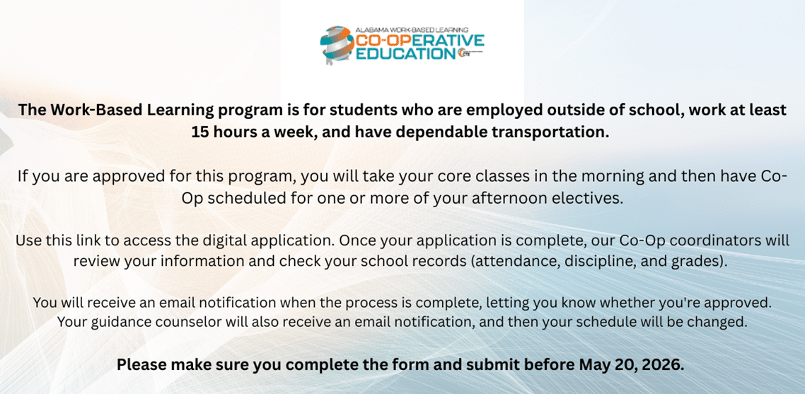 Click link to enroll in the 2026-2027 Co-Op Program.