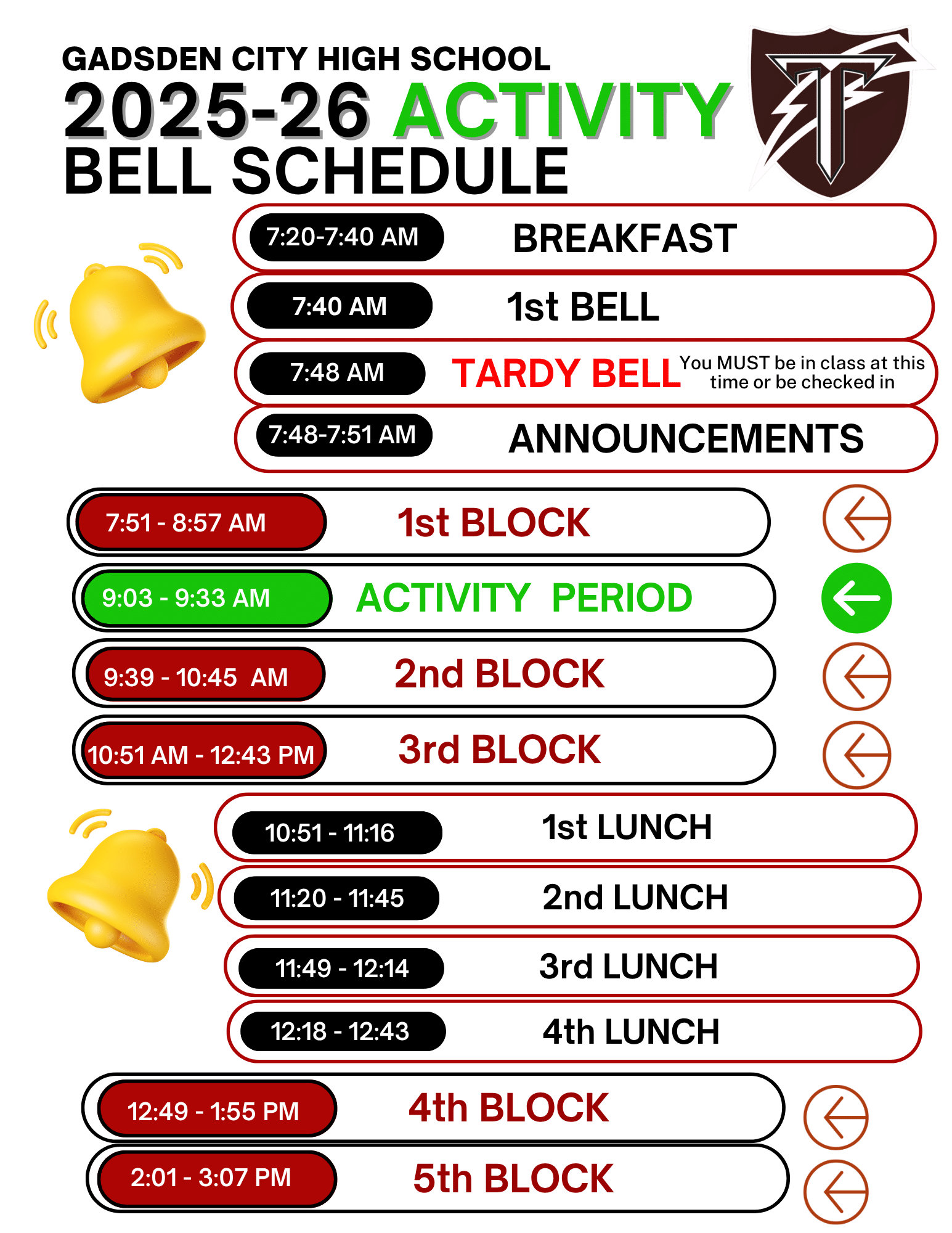The below schedule will be followed when there is morning activity incorporated into the school day.